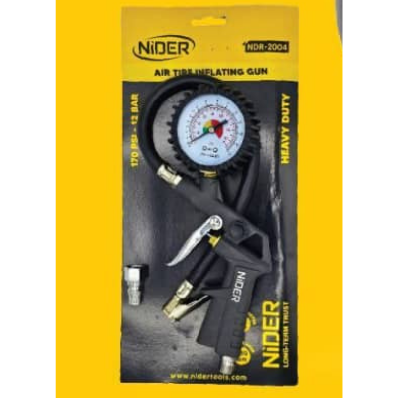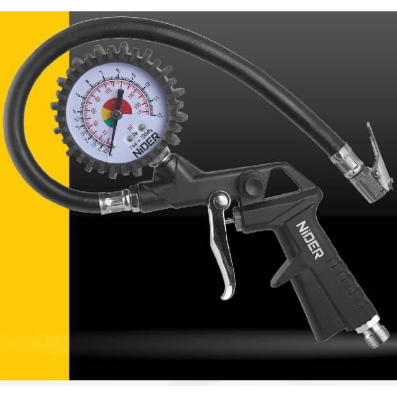 درجه باد تفنگی کارگاهی نیدر مدل NDR2004 ابزاری قدرتمند و دقیق برای سنجش و تنظیم فشار باد انواع لاستیک و تجهیزات بادی در محیطهای صنعتی و کارگاهی است. این محصول با طراحی شبیه به تفنگ بادی و مجهز به نازل باددهی، امکان اندازهگیری فشار و تنظیم همزمان را فراهم میآورد. مکانیزم داخلی دقیق با گیج آنالوگ خوانا، اطمینان از ثبت درست فشار را در هر بار استفاده تضمین میکند و از آسیب دیدن لاستیکها یا ابزارهای بادی به دلیل فشار نامناسب جلوگیری مینماید.